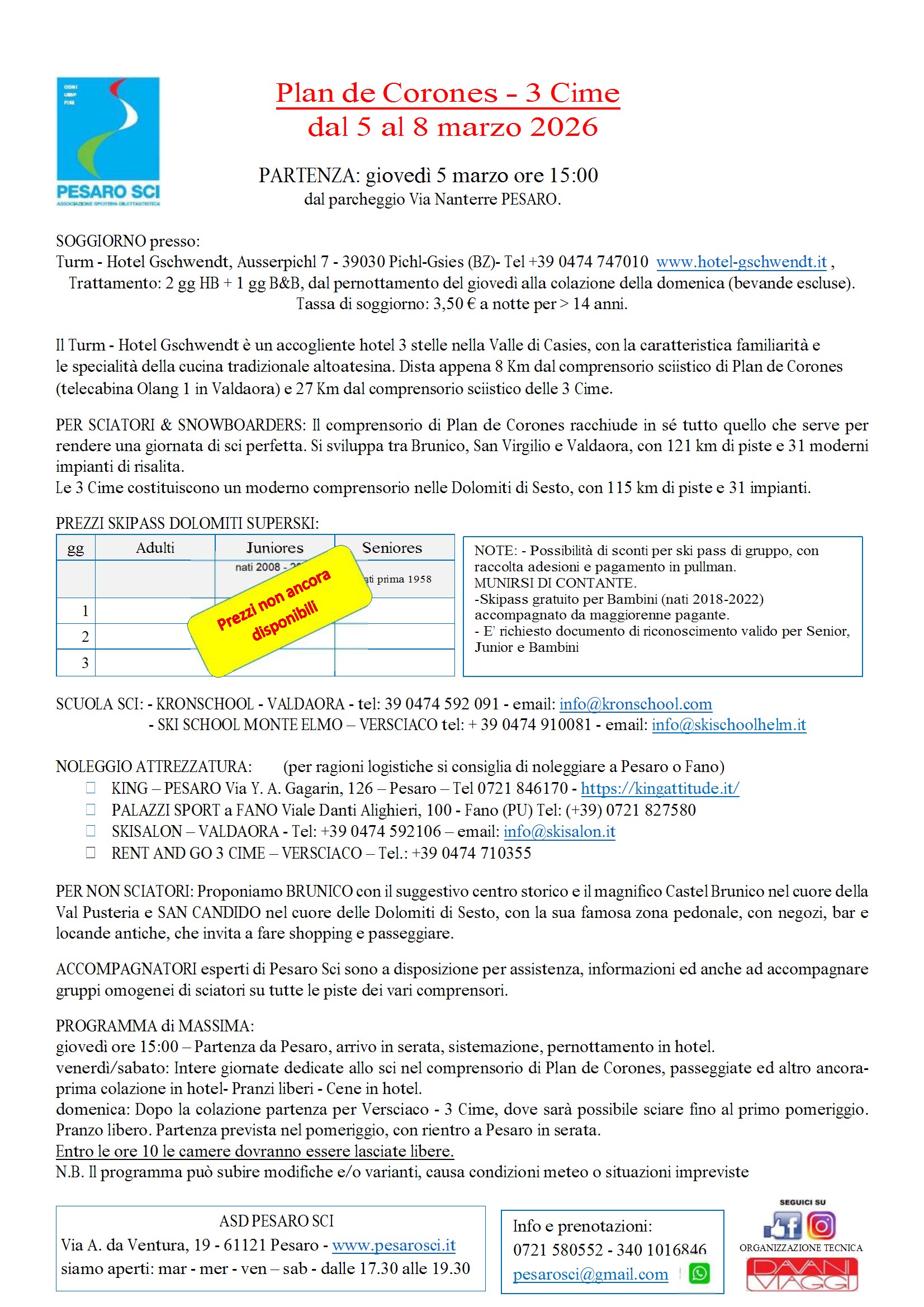 Il punto di incontro per le nostre partenze in pullman, salvo indicazioni contrarie, è situato a Pesaro, presso il parcheggio del campus scolastico di Via Nanterre.
