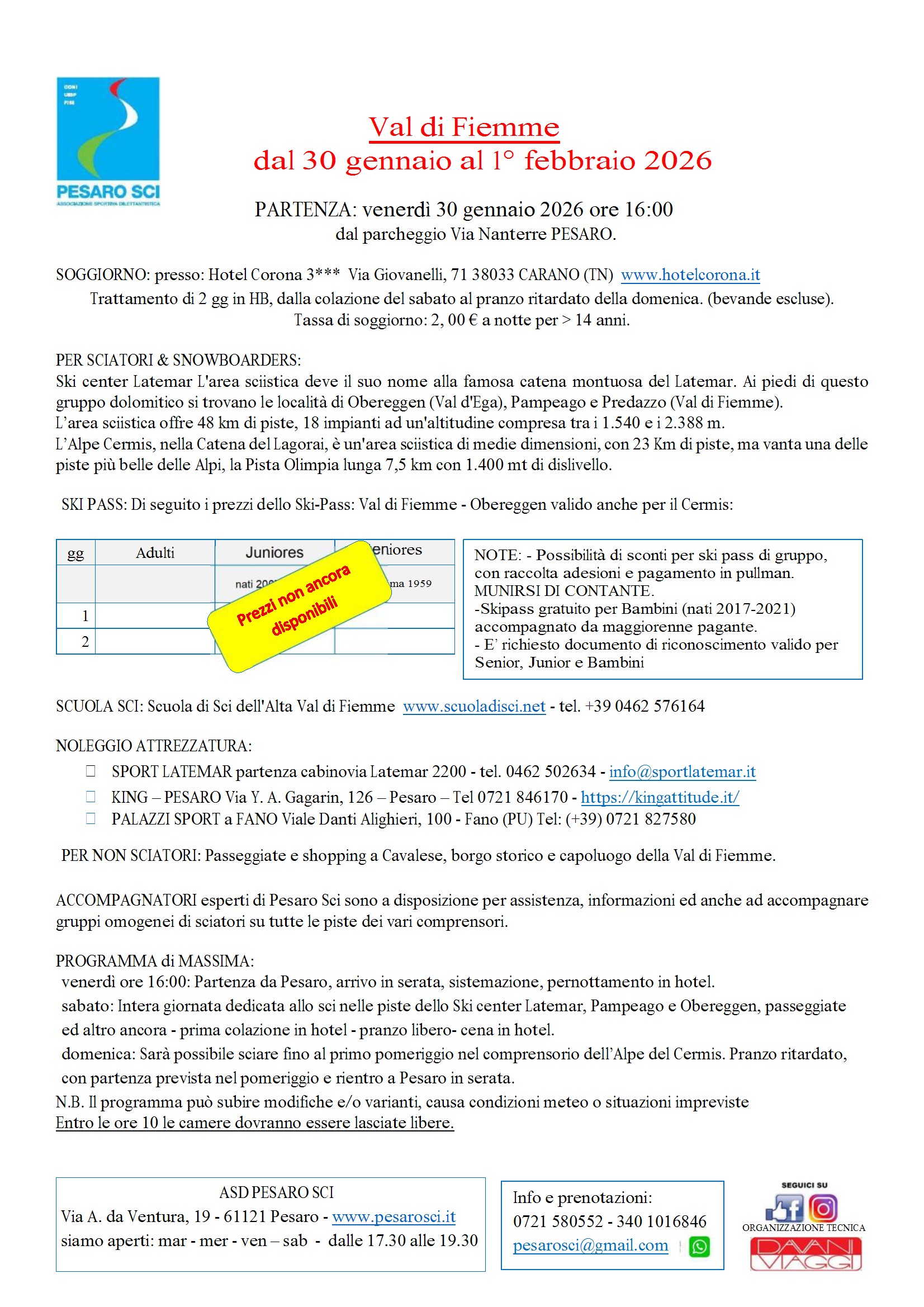 Il punto di incontro per le nostre partenze in pullman, salvo indicazioni contrarie, è situato a Pesaro, presso il parcheggio del campus scolastico di Via Nanterre.